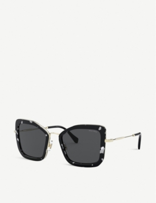 Discount miu miu sunglasses. Miu Miu sunglasses offer on-trend designs 100 UVA and UVB protection and polarized lenses in some styles. Miu Miu Logo sunglasses. Round-frame silver-tone and glittered acetate sunglasses.